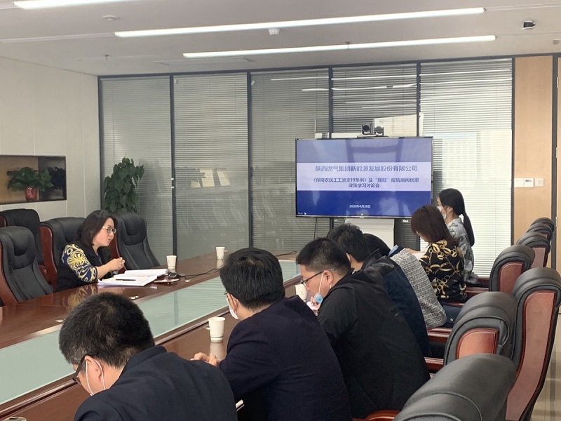 2020年4月28日,新能源公司財務部組織本部及控(參)股公司召開專題學習會議,集中學習了國務院《保障農民工工資支付條例》及省國資委、省治欠辦相關文件精神。新能源公司財務總監任麗貞主持會議。